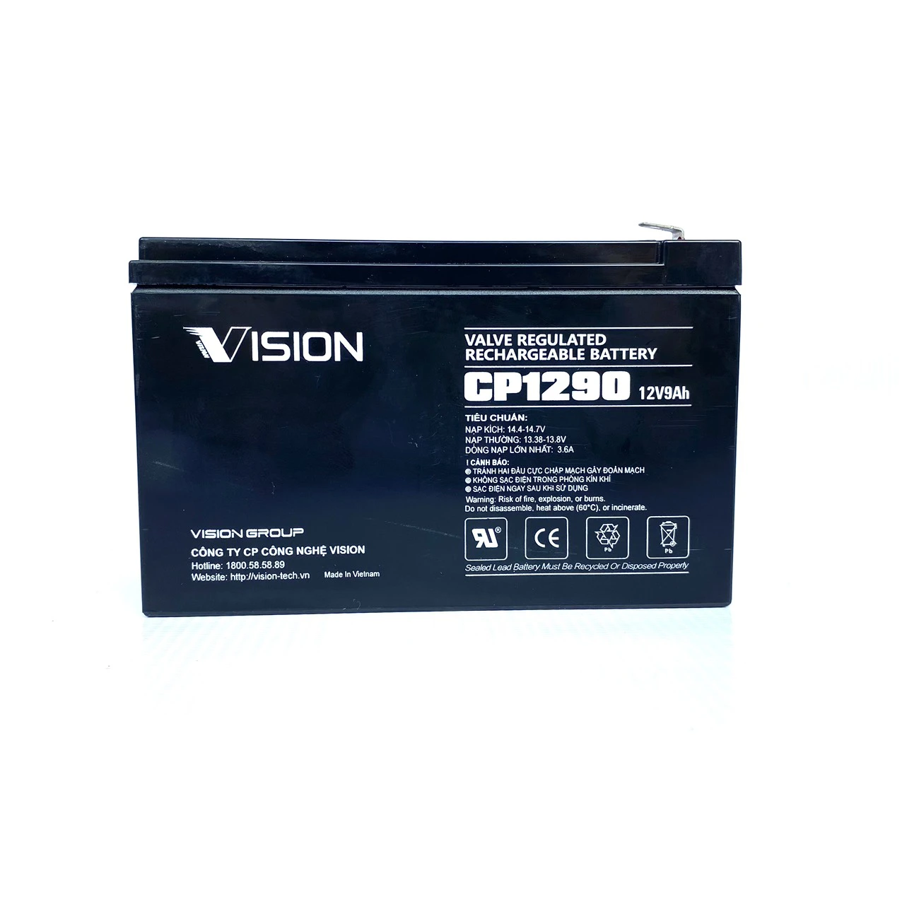 Ắc Quy Vision CP1290 (12V-9Ah) Chính Hãng – Bền Bỉ, Ổn Định, Không Cần Bảo Dưỡng