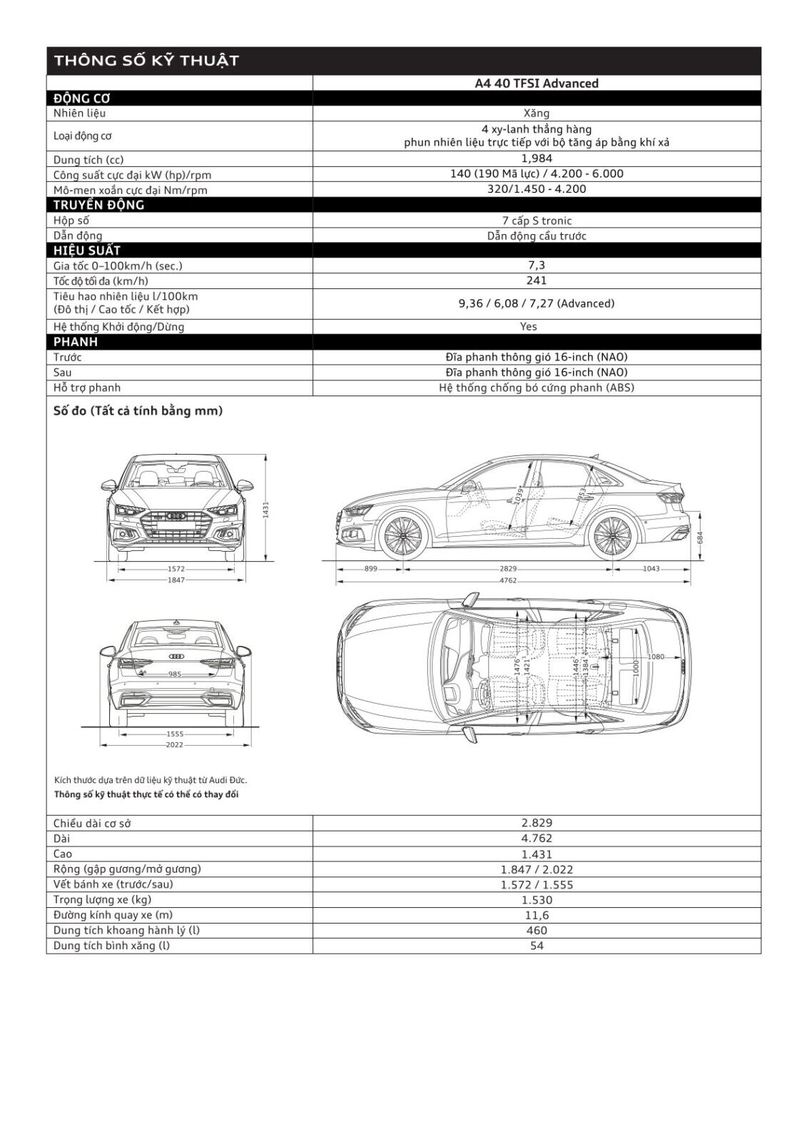 Thông số Audi A4