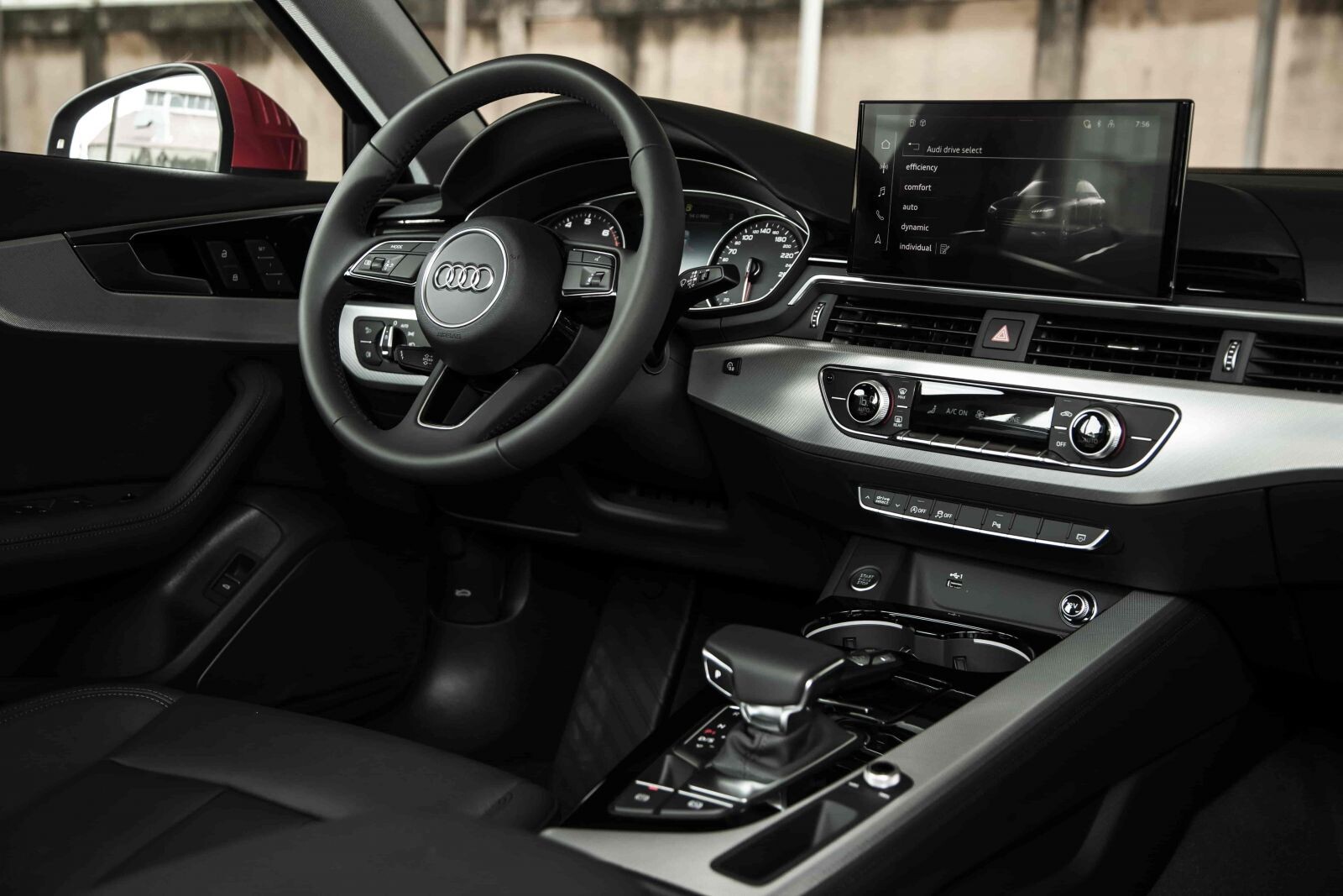 Nổi bật giữa bảng điều khiển trung tâm là màn hình cảm ứng MMI lớn cực thanh mảnh với độ dày chỉ 13 mm, hơi nghiêng nhẹ về phía người lái. Màn hình có kích thước 10.1 inch, hiển thị đồ họa sắc nét với độ phân giải cao 1.540 x 720 pixel. Đi kèm với đó còn có hệ thống âm thanh Audi.