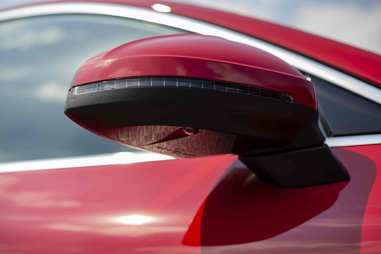 Cặp gương chiếu hậu bố trí tách rời cột A, đặt ở vai cửa hỗ trợ hạn chế điểm mù, cũng như tăng thêm vẻ thể thao. Gương hỗ trợ đầy đủ các tính năng chỉnh điện, gập điện, chống chói tự động, sấy kính và tích hợp đèn LED báo rẽ.