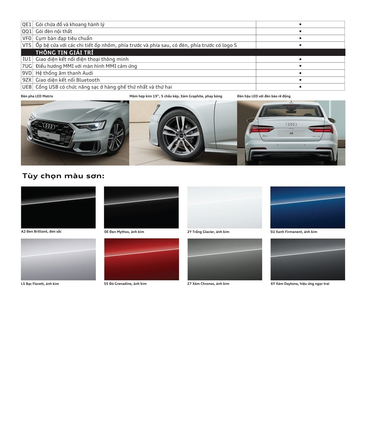 Ngoài ra, Audi A6 2025 còn sở hữu hàng loạt các trang bị nổi bật khác như: