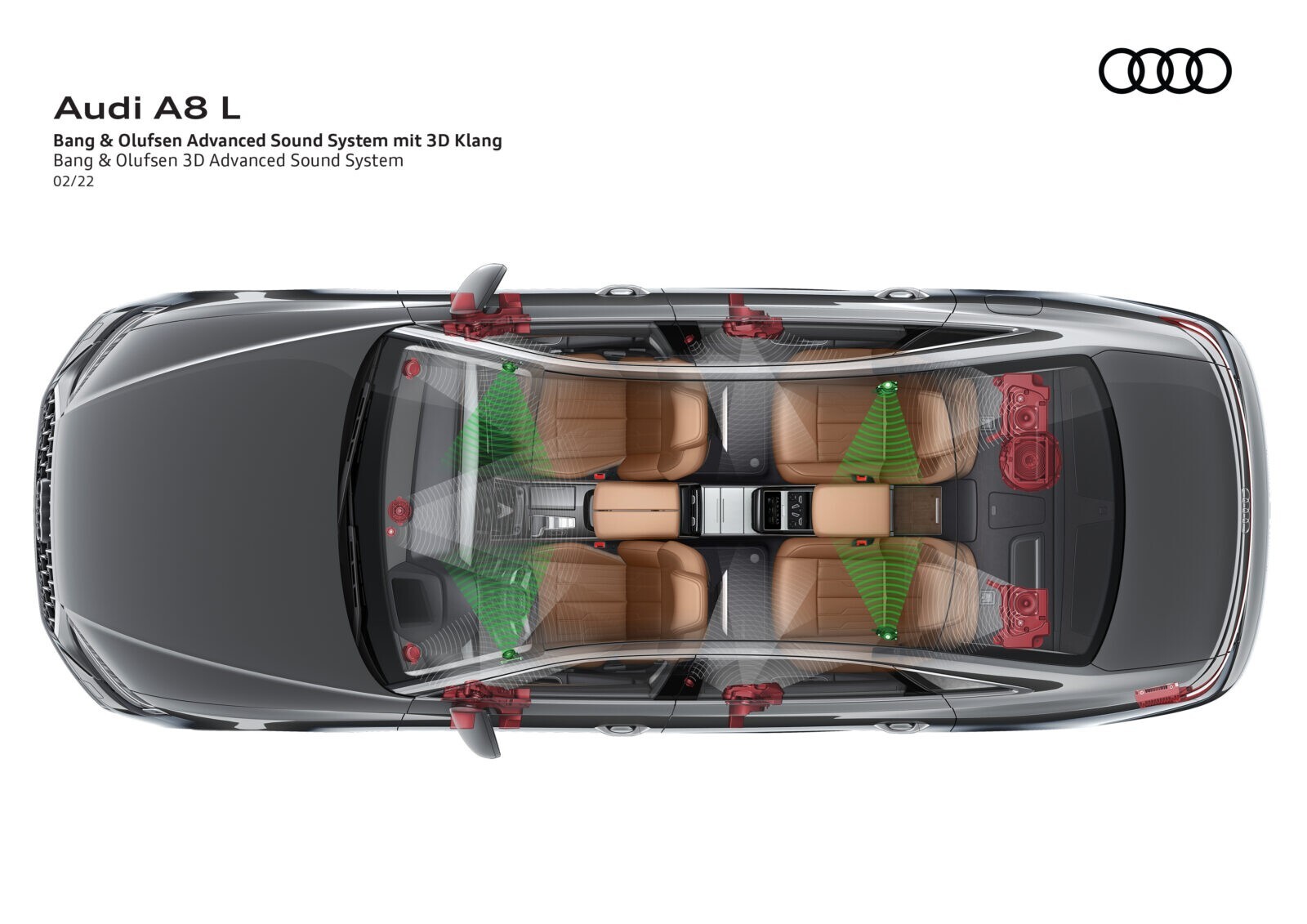 Hệ thống âm thanh 3D cao cấp Bang & Olufsen 17 loa, công suất 733 watt sẽ đem đến cho người dùng cảm giác như đang ở trong một khán phòng hòa nhạc. Chưa dừng lại ở đó, phiên bản cao cấp hơn còn được trang bị 23 loa, mang lại công suất 1,920 watt và trải nghiệm âm thanh 3D đầy đủ cho cả hành khách phía sau.