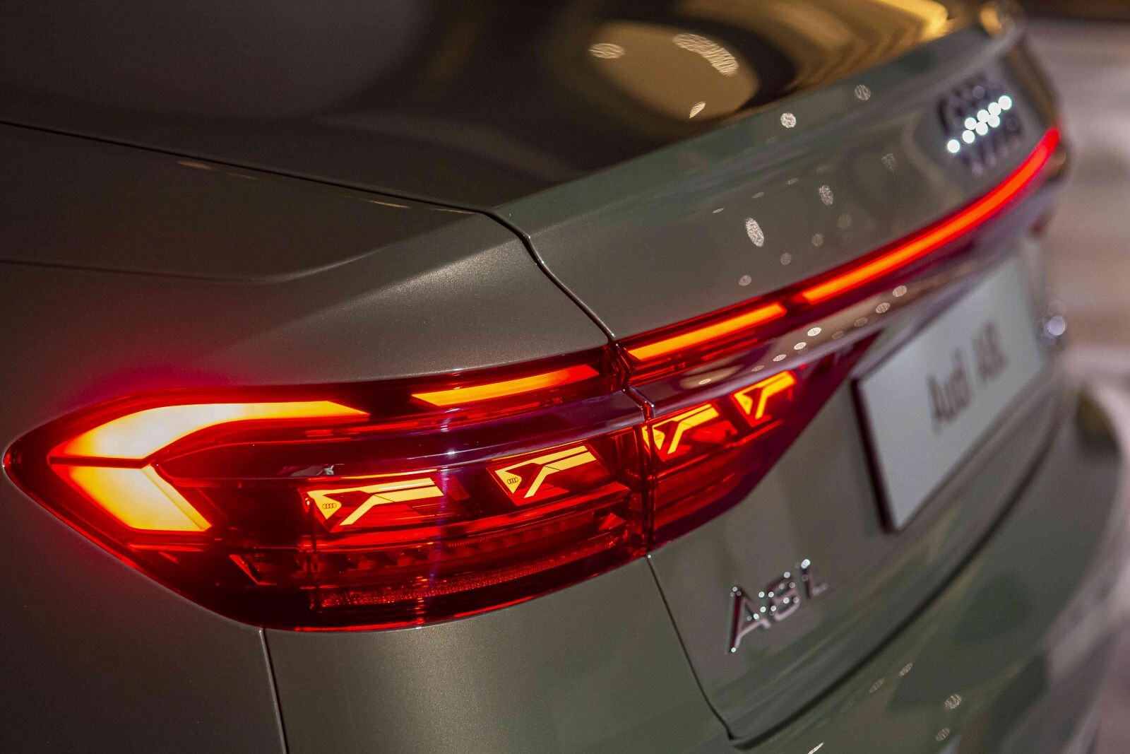 Di chuyển ra phía sau, đuôi xe Audi A8 2025 vẫn sở hữu kiểu thiết kế bo tròn quen thuộc trên các mẫu sedan nhà Audi, cùng cấu trúc phân tầng đặc biệt. Công nghệ OLED (Organic Light-Emitting Diode) được sử dụng cho đèn hậu tạo ra những bức tranh ánh sáng đầy ấn tượng và hấp dẫn.