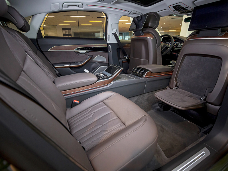Hàng ghế sau trên Audi A8L Plus cùng bệ gác chân
