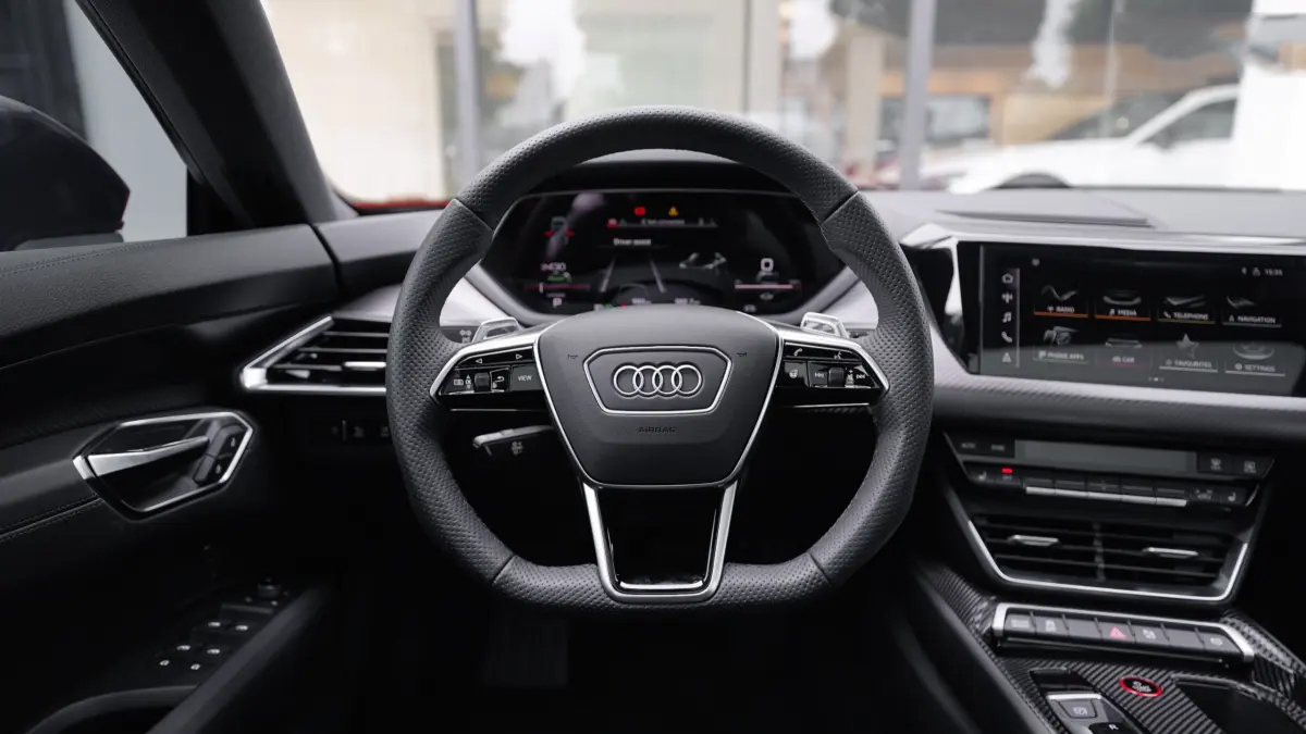 Khoang lái được hoàn thiện tỉ mỉ, nổi bật với vô lăng hai chấu thiết kế lạ mắt, điểm xuyết viền chrome tinh tế, tạo cảm giác hiện đại và sang trọng. Các phím chức năng tích hợp trên vô lăng mang đến sự tiện lợi tối đa cho người lái. Phía sau là màn hình kỹ thuật số Virtual Cockpit hiển thị sắc nét, mang lại trải nghiệm quan sát trực quan như đang xem một màn hình điện ảnh thu nhỏ.