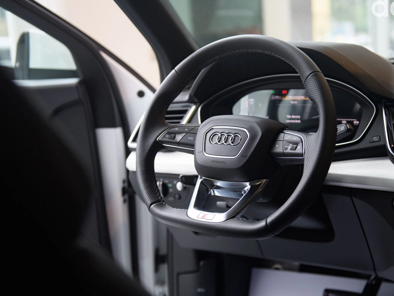 Vô-lăng của Audi Q5 45 S line được thiết kế dạng D-cut thể thao, bọc da mềm mại