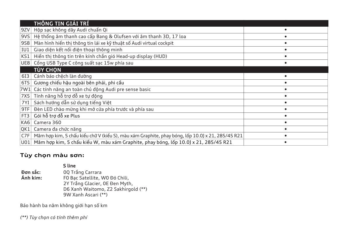 - Giao diện âm nhạc Audi Music Interface (MP3, USB-A, USB-C), ổ cắm 12 V phía sau