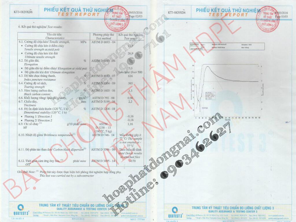 Bảng test kỹ thuật do Trung tâm kỹ thuật tiêu chuẩn đo lường chất lượng 3 kiểm nghiệm