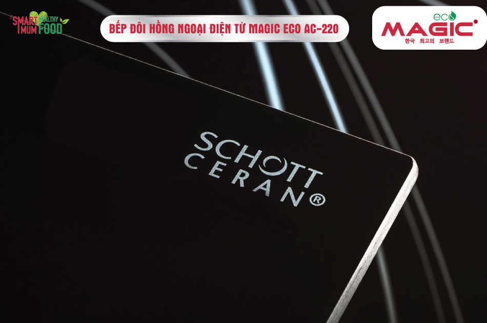 Schott Ceran là một mẫu gốm kính cao cấp, được làm từ gốm sứ thủy tinh đặc biệt. Bếp Hồng ngoại và Điện từ đôi Magic Eco AC-220 sử dụng kính Schott Ceran nguyên khối chịu nhiệt, chịu lực, dễ dàng lau sạch sau mỗi lần khi sử dụng.