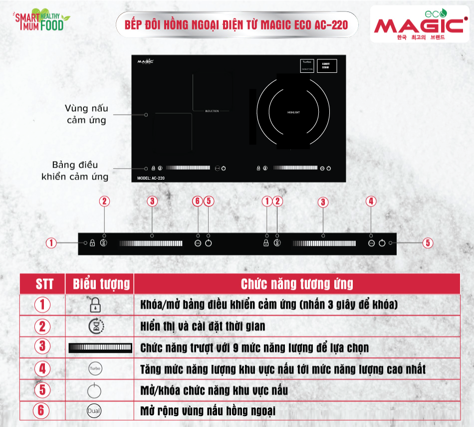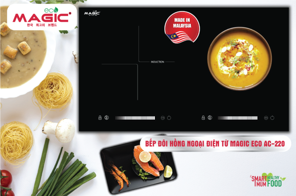 Và sự xuất hiện của Bếp Hồng ngoại và Điện từ đôi Magic Eco AC-220 lại một lần chứng minh được sức mạnh của sự kết hợp tuyệt vời giữa công nghệ Hàn Quốc và dây chuyền sản xuất tại Malaysia. “Smart Mum - Healthy Food” chính là thông điệp mà Magic Eco muốn lan tỏa ngày càng nhiều đến những ai yêu thích nấu ăn tinh gọn nhưng vẫn đảm bảo đầy đủ các món ngon cho gia đình.