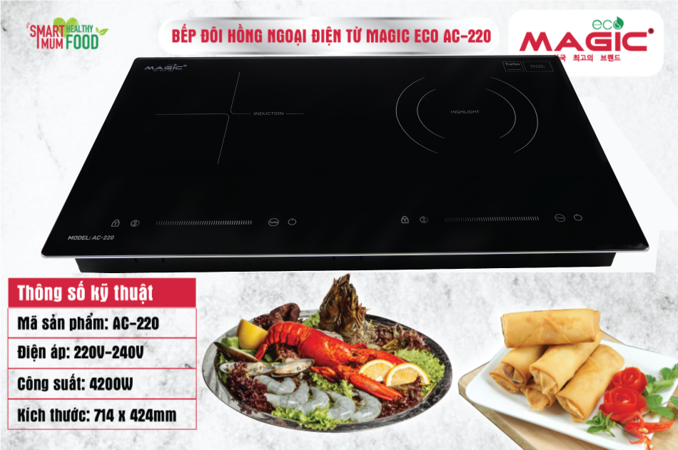 BẾP ĐÔI HỒNG NGOẠI VÀ ĐIỆN TỪ MAGIC ECO AC-220