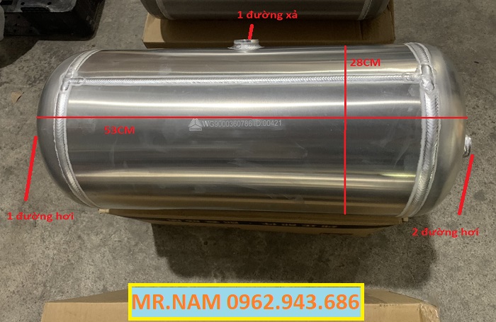 BÌNH HƠI NHÔM HOWO là một trong những phụ tùng không thể thiếu trên những chiếc xe tải ben và đầu kéo, với công dụng có thể chứa hơi trên xe sử dụng vào những bộ phận như phanh hơi, ghế hơi, còi hơi, xịt bụi ...vv. Trong quá trình sử dụng và vận hành xe tải không thể tránh khỏi những va chạm không đáng tiếc dẫn đến hỏng hóc về bình hơi nhôm trên. Nhằm đáp ứng với nhu cầu đó. công ty chúng tôi đã nhập khẩu và đưa ra thị trường trong nước phục vụ việc tay thế cho xe tải mình bị hỏng hay muốn nâng dung lượng sức chứa hơi của xe lên.