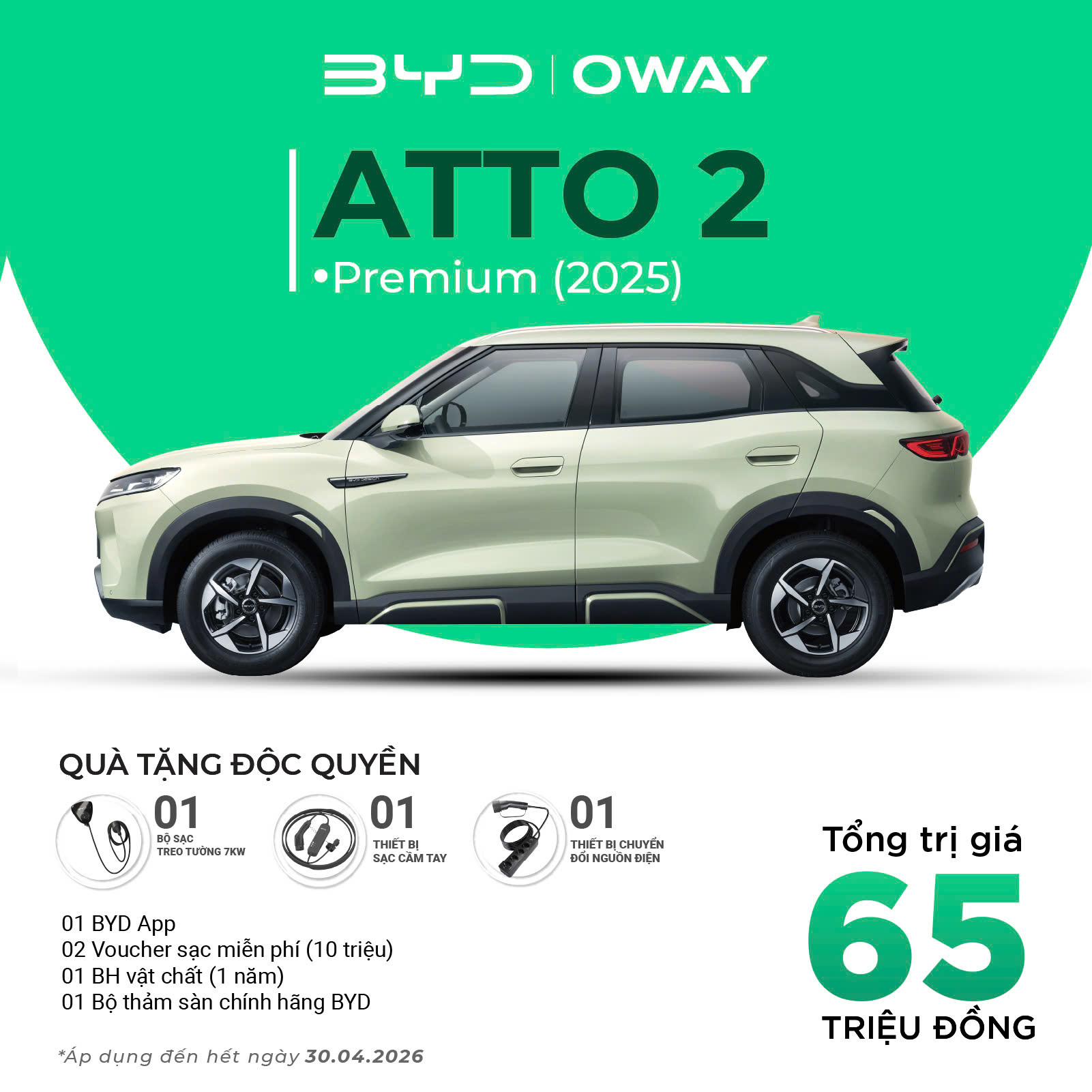| BYD Atto 2 | 669.000.000 đ | 691 triệu đồng | 672 triệu đồng |