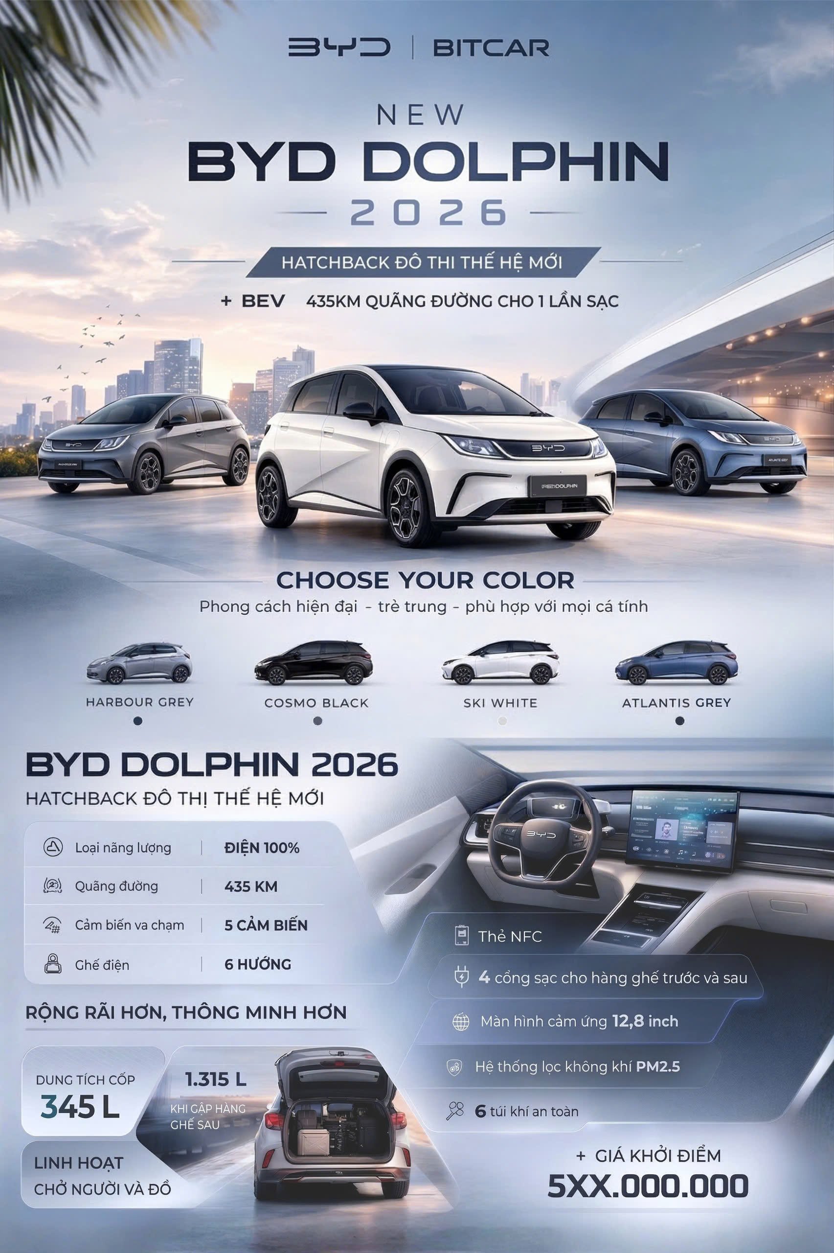Có thể thấy, ngoài vẻ ngoài hiện đại, nội thất trang bị tiện nghi thì BYD Dolphin còn sở hữu khối động cơ vận hành mạnh mẽ cùng hệ thống an toàn tiên tiến, tất cả tạo nên sự lựa chọn hoàn hảo cho những ai đang tìm kiếm trên một chiếc xe điện.