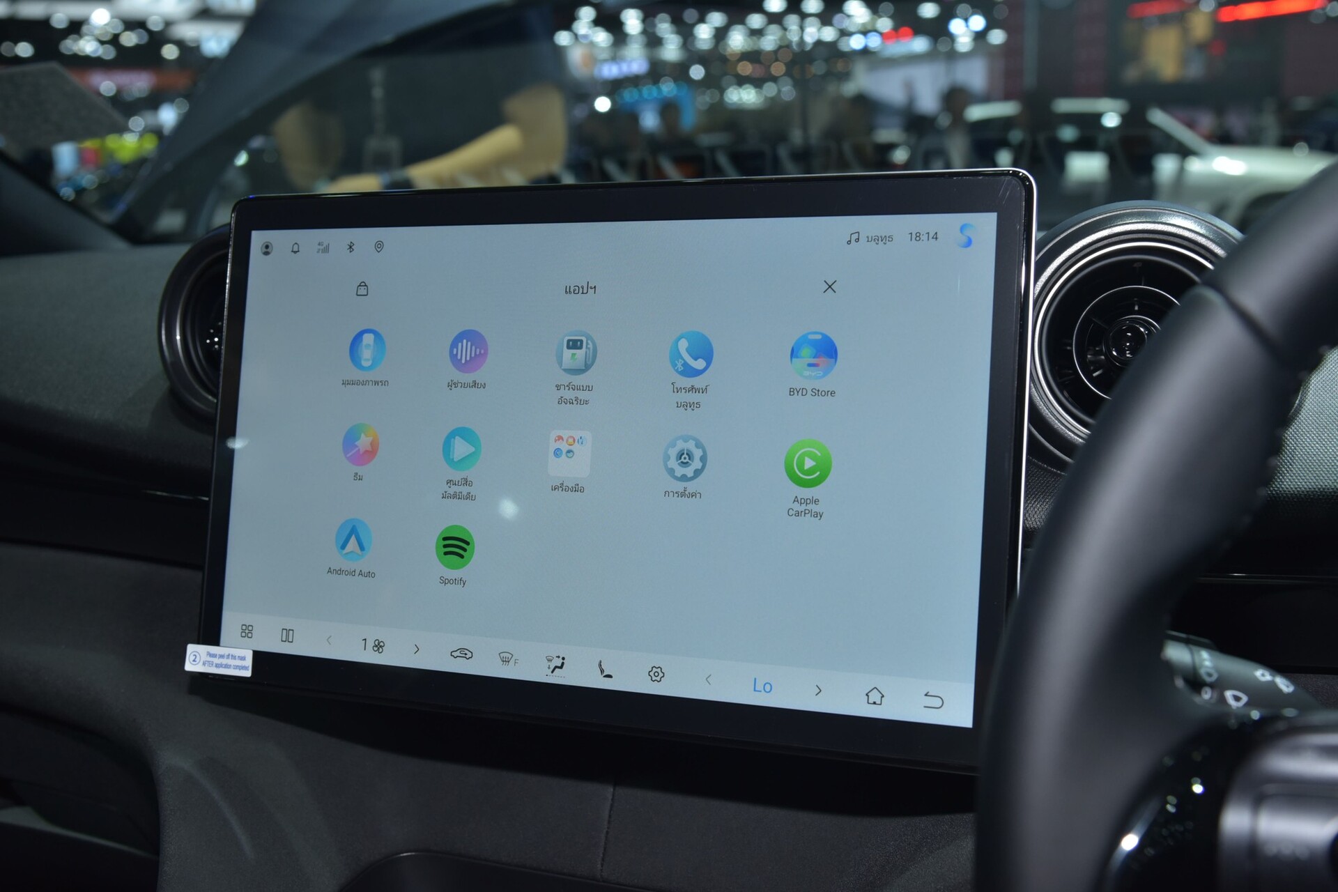 Điểm nhấn nổi bật nằm ở màn hình giải trí trung tâm kích thước 12,8 inch có khả năng xoay linh hoạt 90 độ giữa chế độ ngang và dọc. Hệ thống hỗ trợ kết nối thông minh như Apple CarPlay (qua USB) và Android Auto không dây, mang đến trải nghiệm giải trí đa dạng và tiện lợi.