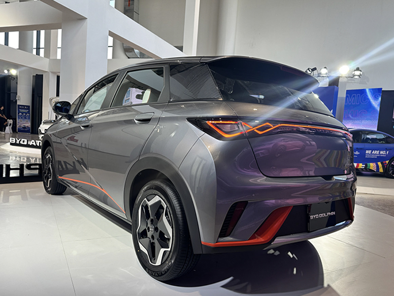Đèn hậu của BYD Dolphin được thiết kế hiện đại với công nghệ LED. Cụm đèn hậu LED này mở rộng và bao trọn bề ngang phía sau xe, tạo nên một điểm nhấn đặc biệt cho phần đuôi xe.