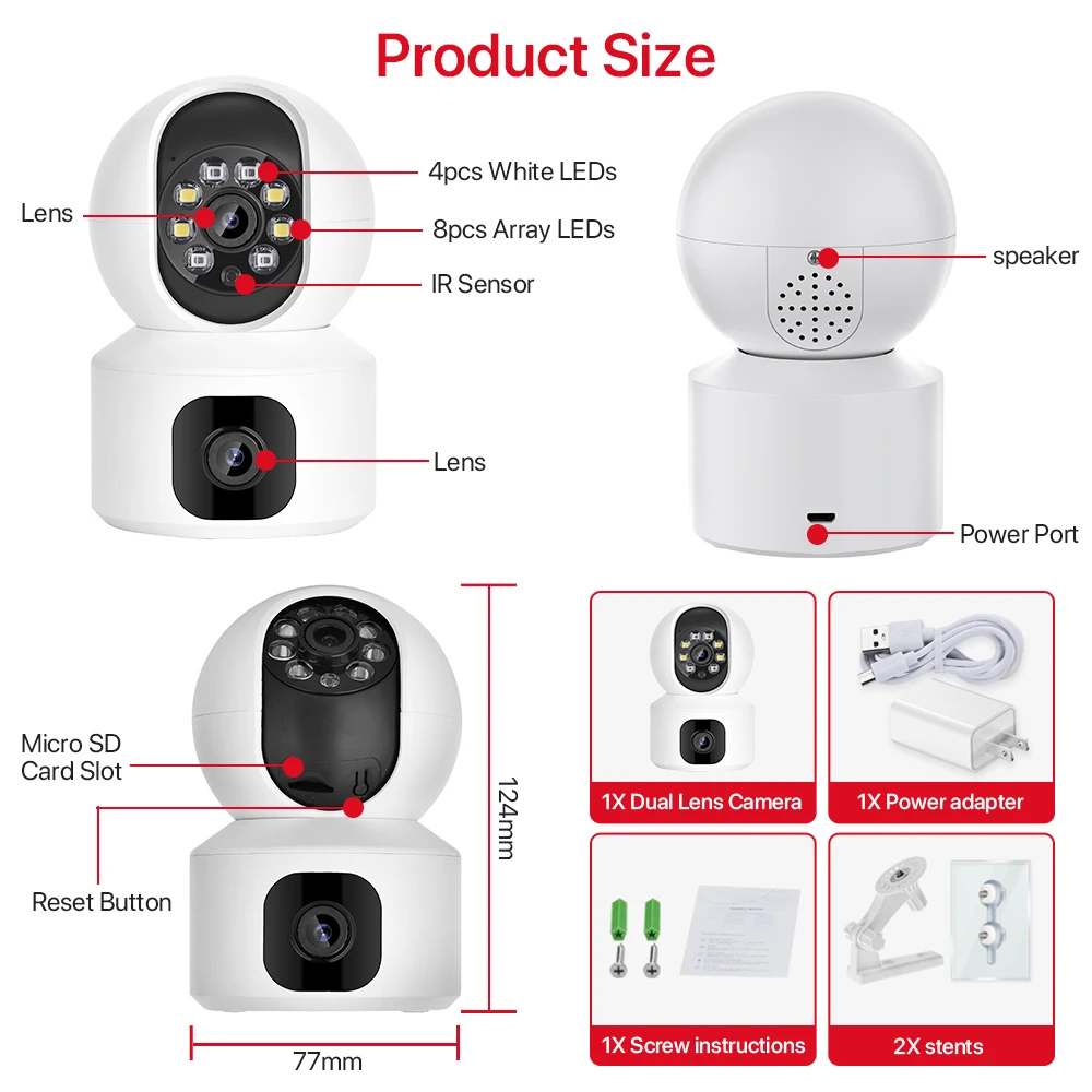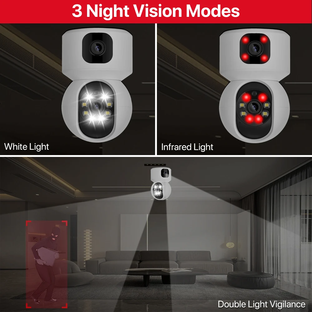 Được trang bị 4 đèn LED trắng và 8 đèn LED hồng ngoại hiệu suất cao, nó có thể cung cấp cho bạn hiệu ứng hình ảnh đầy màu sắc và độ nét cao bất kể ngày hay đêm.