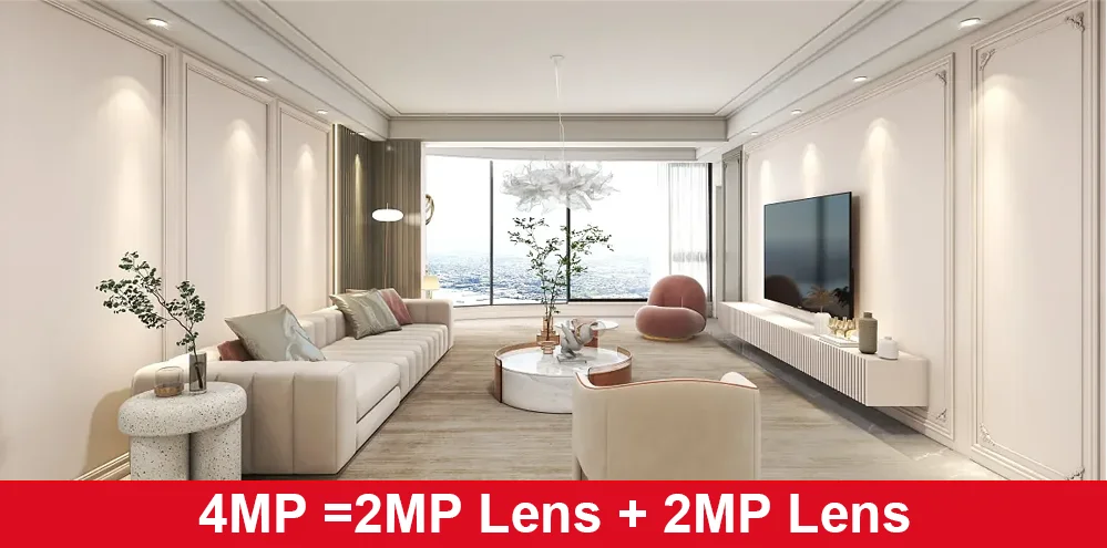 Độ phân giải 4MP ( 2K 4MP Resolution: 2MP Lens + 2MP Lens = 2K 4MP)