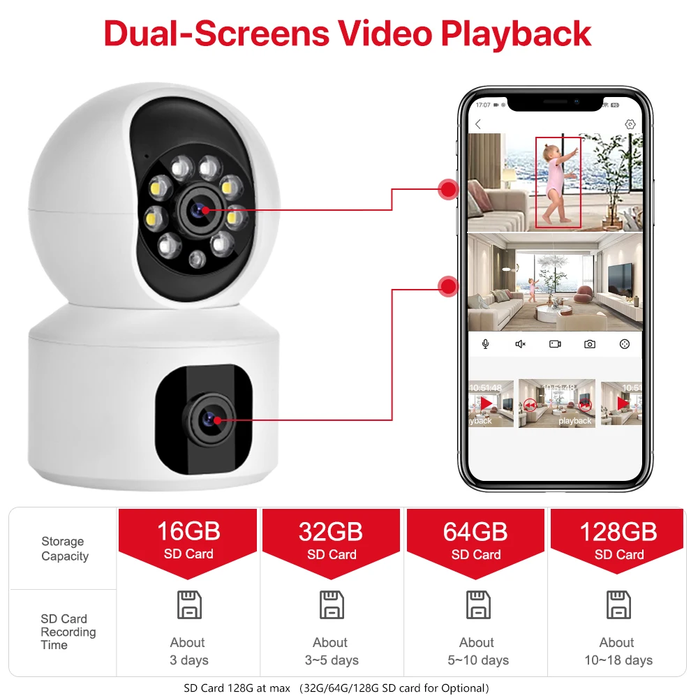 Hỗ trợ gắn thẻ nhớ lên đến 128G bản ghi thẻ SD.Video ghi lại có thể được phóng to trực tiếp để xem.