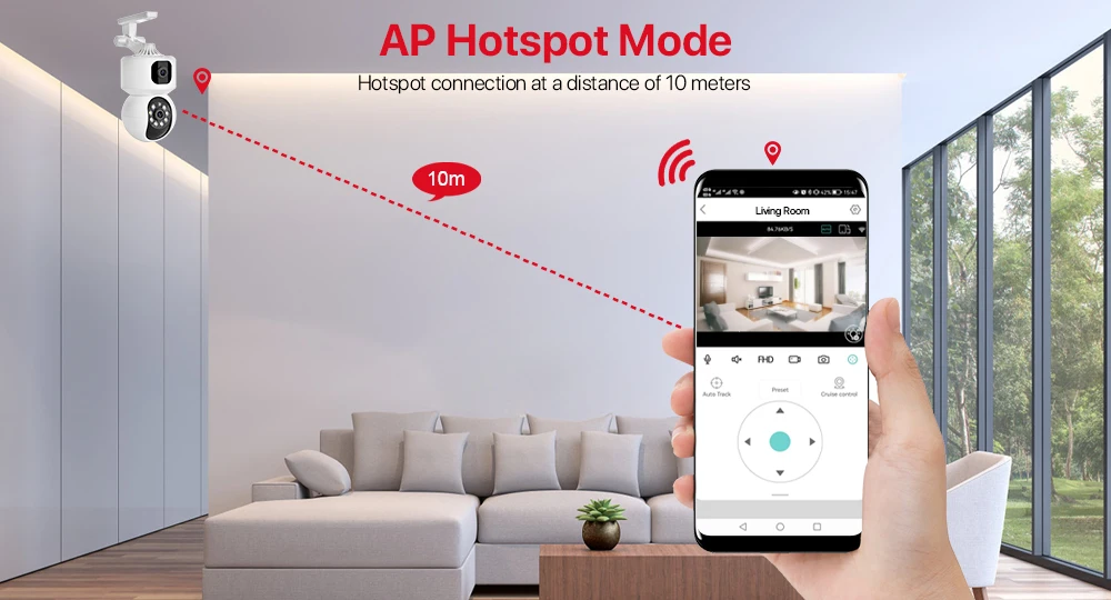 Không có mạng? Bạn có thể kết nối camera trong phạm vi 10 mét thông qua chế độ AP, xem camera trong thời gian thực và thực hiện cài đặt quay video.