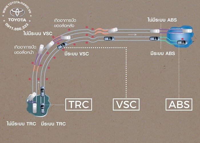Các hệ thống an toàn như: ABS, EBD, BA, VSC, TSC, HAC…