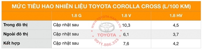Mức tiêu hao nhiên liệu xe toyota corolla cross 2026