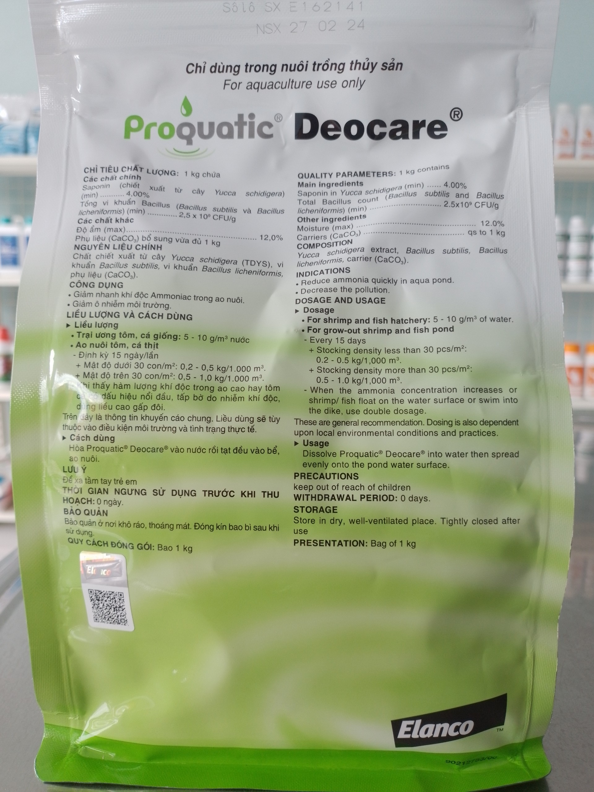 - Hoà Proquatic Deocare vào nước rồi tạt đều vào bể, ao nuôi.