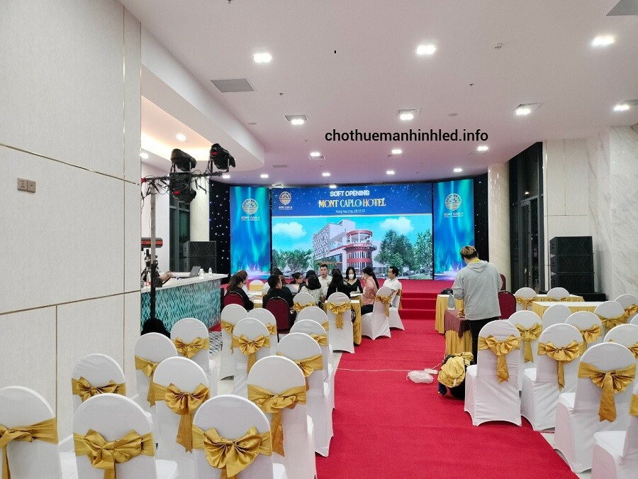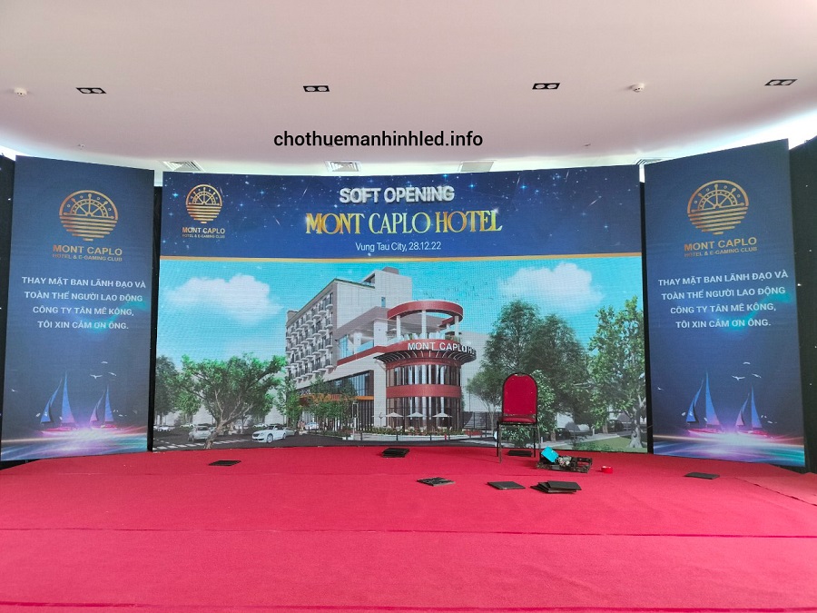 Công ty đã khẩn trương lắp dựng và set up mọi thứ cho ban tổ chức sự kiện Soft Opening Mont Caplo Hotel tại Vũng Tàu yêu cầu lắp đặt màn hình Led sự kiện trong nhà. Với tổng kích thước của màn hình Led này là 31.5 mét vuông với 1 màn hình chính và 2 cánh. Khi màn hình được lắp bởi một đội có trình độ và thậm chí được vận chuyển bằng xe tải, việc đó sẽ dễ dàng hơn nhiều. Vì vậy, chúng tôi vẫn đảm bảo thời gian như đã nêu dù lắp đặt ở ngoài thành phố Hồ Chí Minh.