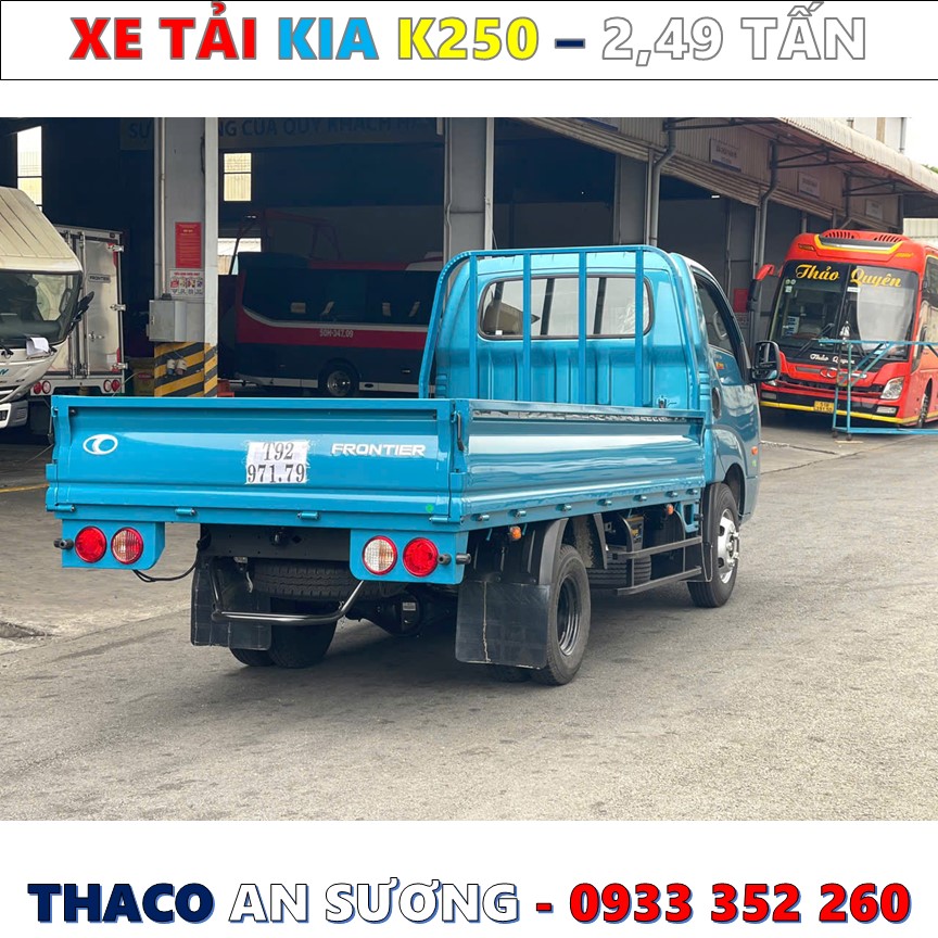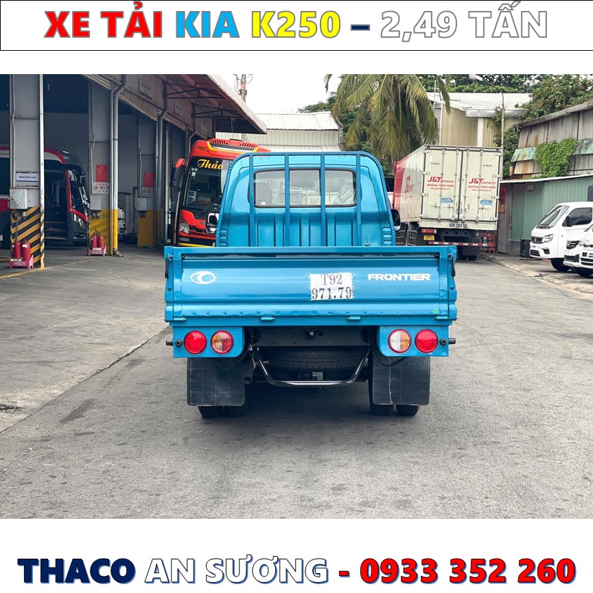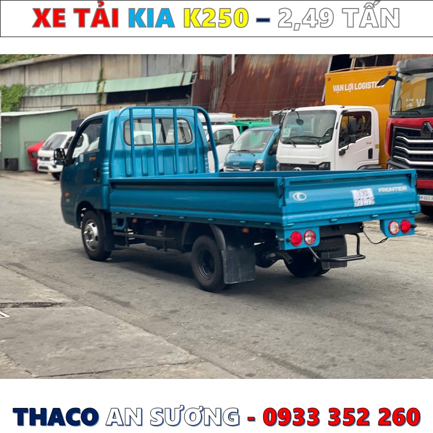 Xe tải kia K250 thùng lửng có tải trọng là 2.49 tấn được thiết kế với hệ thống phanh an toàn tuyệt đối, hệ thống phanh ABS giúp điều hòa, chống bó cứng lực phanh, hạn chế phanh gấp, xẹt bánh…trong những tình huống gặp phải khúc cua hay phanh xe tức thì.Hệ thống cân bằng điện tử ESC ở phanh xe giúp xe đạt được sự ổn định, tránh bị mất lái, văng đuôi xe hay những tình huống lật xe khi thắng gấp, khúc cua... được bán chạy nhất là mẫu thùng dạng đóng từ thùng lửng lên thùng mui bạt, dạng mở 3 bửng. Với mẫu thùng này sẽ giúp chiếc xe cứng cáp hơn, bảo vệ hàng hóa khỏi gió mưa tốt hơn vì các vách được gia cố bằng các tấm tôn kim loại.