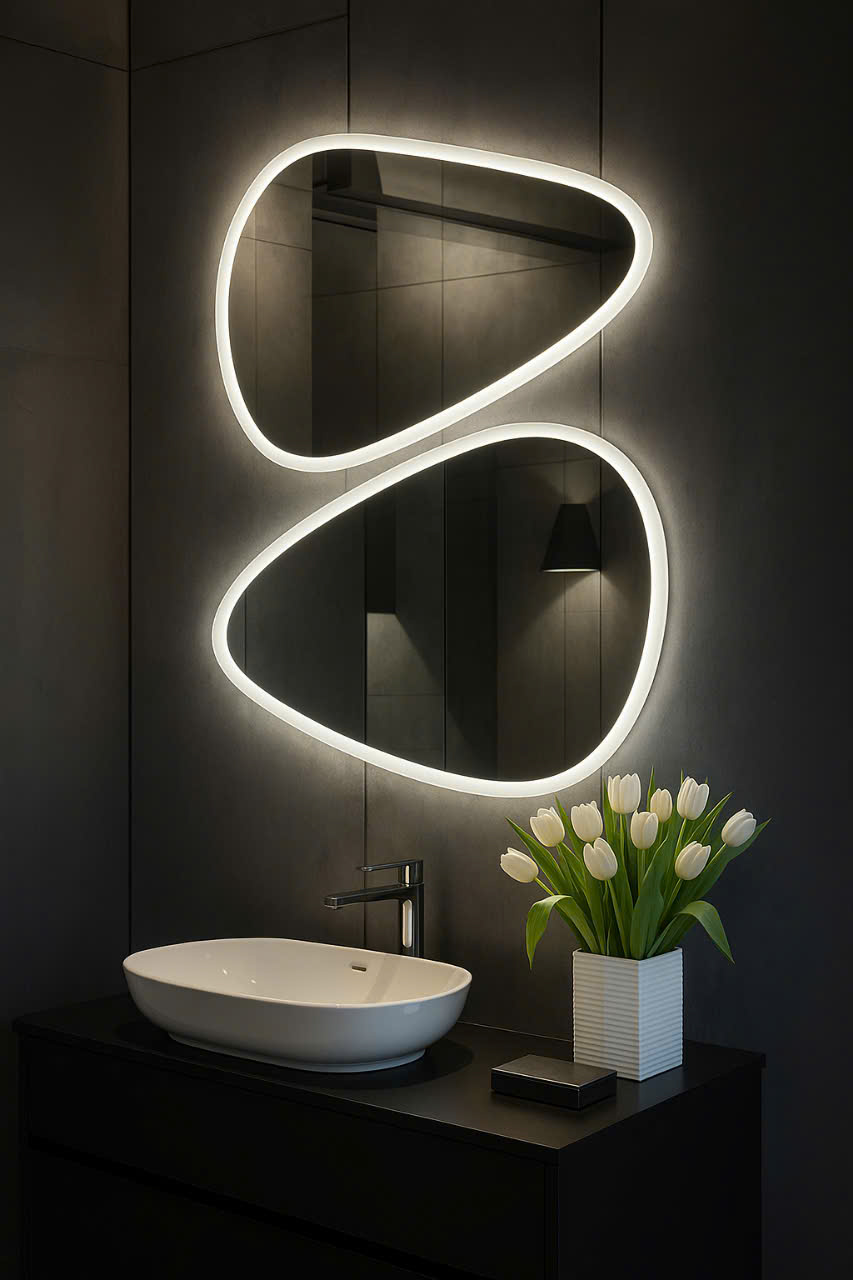 🌟 Biến phòng tắm của bạn thành không gian nghệ thuật ánh sáng với gương LED freeform Citybuilding – đẹp từ mọi góc nhìn, tinh tế từng chi tiết.
