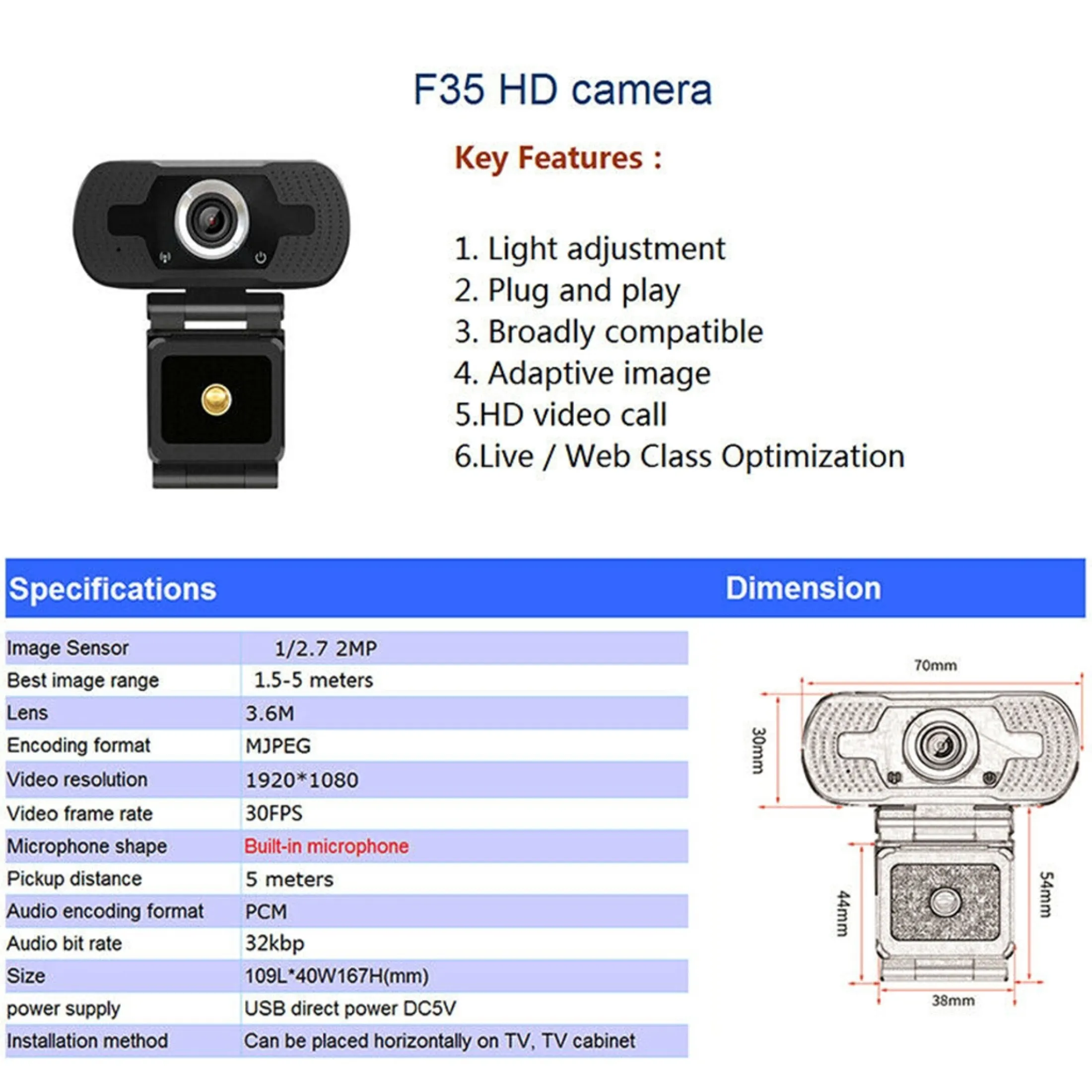 Webcam HD 1080P Máy Tính Mini PC Camera Web Với Phích Cắm USB Camera Xoay Để Phát Sóng Trực Tiếp Cuộc Gọi Video Công Việc Hội Nghị, dạy học online, học trực tuyến...