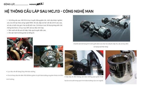 Cầu trước Đầu kéo Howo Sinotruk T7H 440HP sử dụng loại HF VGD75 cầu dầm thẳng, không đối xứng đảm bảo khả năng điều hướng chính xác. Cầu sau là cầu chủ động, trang bị cầu láp MCY13 được phát triển với công nghệ MAN, cho khả năng chịu tải lên đến 13 tấn. Cầu sau này còn tích hợp khóa vi sai, sử dụng bộ răng viền, ổ trục SKF chất lượng cao và bộ lọc dầu tích hợp, đảm bảo hoạt động bền bỉ và hiệu quả. Với độ sai số thấp và tỷ số truyền là 3.7 và 4.11, cầu sau mang lại khả năng truyền dẫn cao tối ưu hóa lực kéo và hiệu suất vận hành cho xe.