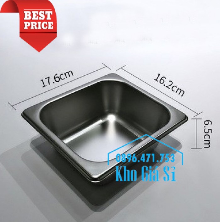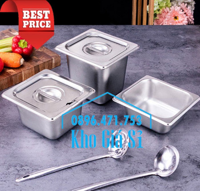 Khay inox 1/6*65 chuyên dùng để đựng các loại thạch trà sữa, khuôn ba tê hoặc đựng kem tươi.