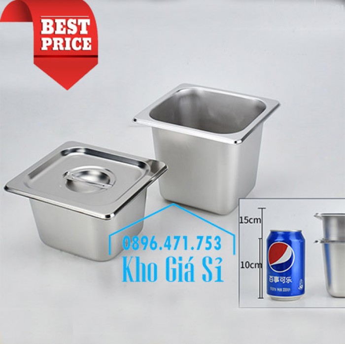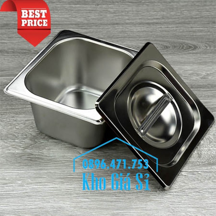 KHAY INOX 1/6 CHIỀU CAO 10CM ĐỰNG THẠCH TOPPING TRÀ SỮA, RAU CÂU