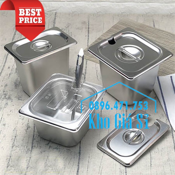 KHAY INOX 1/6 CHIỀU CAO 15CM ĐỰNG CHÁO DINH DƯỠNG, NGŨ CỐC, TÀU HŨ