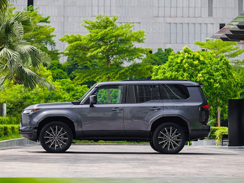 Lexus GX550 có thiết kế khá to lớn và đồ sộ. GX 550 sở hữu những đường gân guốc nam tính và mạnh mẽ. Phần ốp ở thân xe được lược bớt giúp cho khu vực này trở nên thoáng hơn hẳn so với phiên bản trước.