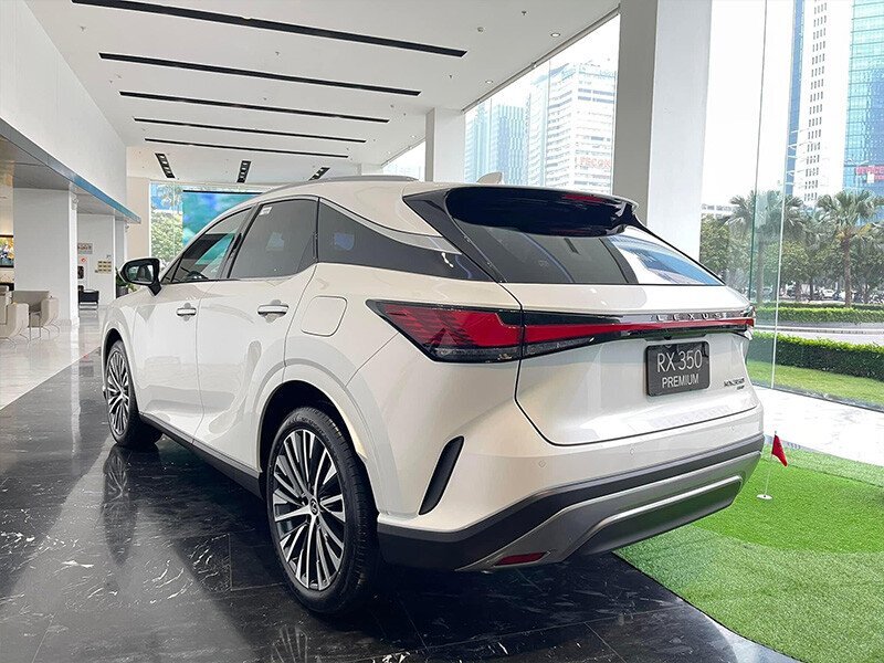 Lexus RX350 Premium lôi cuốn người dùng với phần đuôi là dải đèn hậu LED được cải tiến với đồ họa mới và nối liền bởi dải LED vắt ngang khoang hành lý. Dòng chữ “LEXUS” thay logo chữ L trước đây cũng là sự thay đổi đáng chú ý.