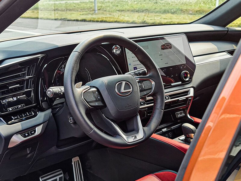 Riêng phiên bản F Sport, Lexus sử dụng tông màu đỏ/đen ở khoang lái nhằm gia tăng phong cách thể thao cho RX 500h.