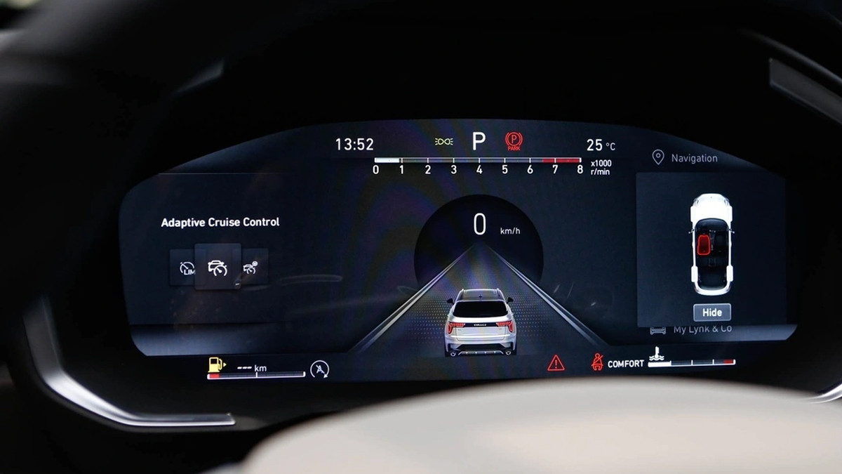 Trung tâm bảng táp-lô là màn hình cảm ứng giải trí 15,4 inch, hỗ trợ thao tác trượt linh hoạt. Hệ thống sử dụng bộ xử lý Qualcomm Snapdragon 820A, vận hành trên nền tảng Lynk & Co 2.0, cho phép kết nối Apple CarPlay và Android Auto, giúp người dùng truy cập bản đồ, âm nhạc và các ứng dụng một cách thuận tiện.