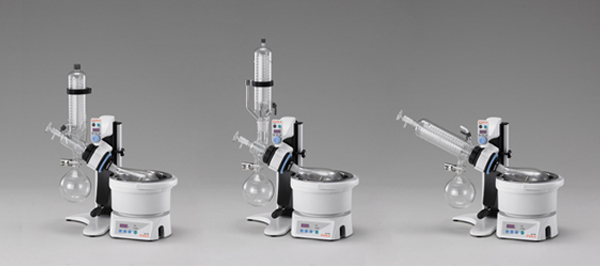 Evaporator (driving unit) + Type V condenser (vertical double spiral) + Water bath | Evaporator (driving unit) + Type S condenser (diagonal double spiral) + Water bath |