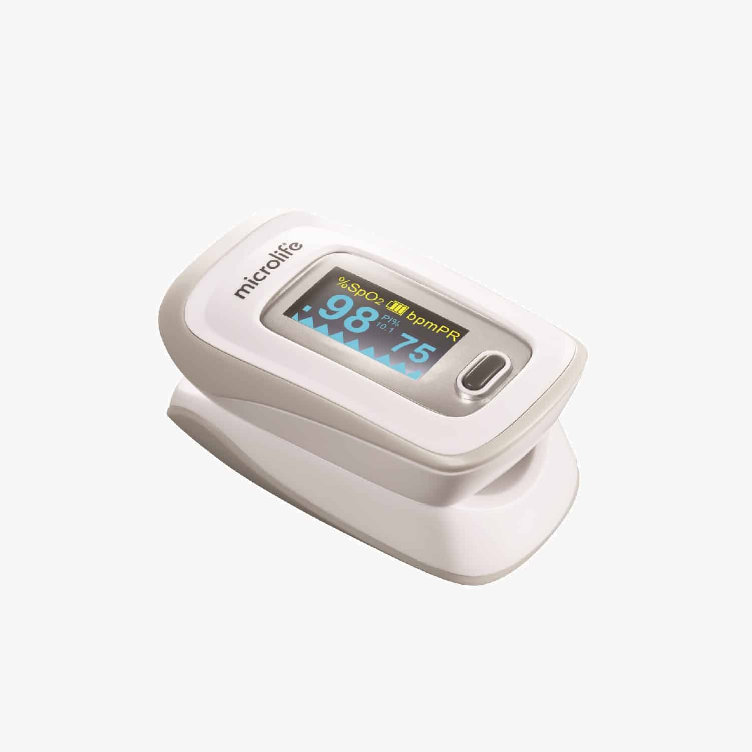 Microlife OXY210 có thiết kế nhỏ gọn như một cái kẹp móc quần áo. Khi đo, bạn chỉ cần mở máy, cho một ngón tay vào giữa, nhấn nút nguồn và chờ kết quả hiện ra trên màn hình.