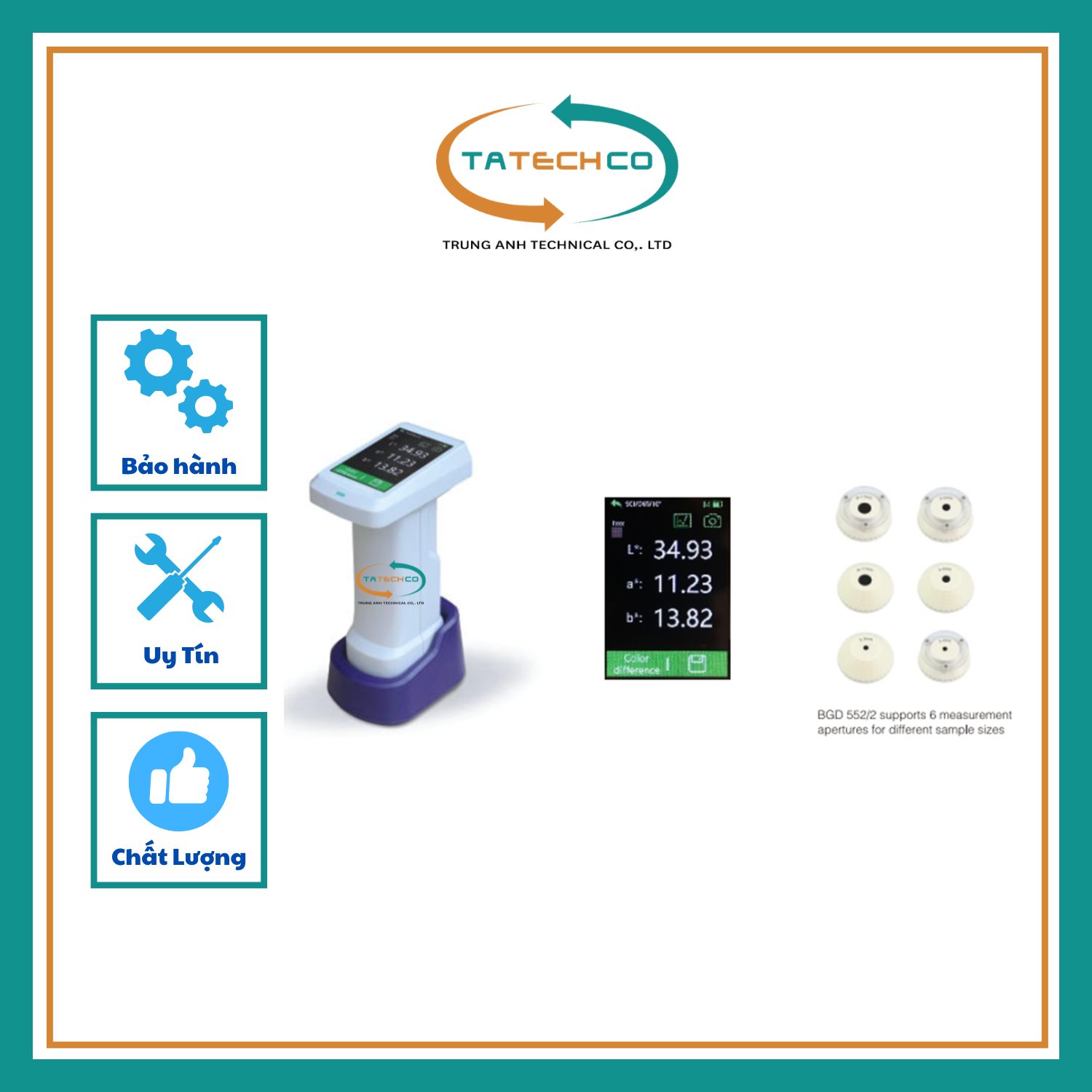 - Hơn 30 chỉ số đo lường, bao gồm: Độ phản xạ quang phổ, CIE-Lab, CIE-LCh, E*ab, Khả năng che phủ, độ trắng, độ vàng, v.v