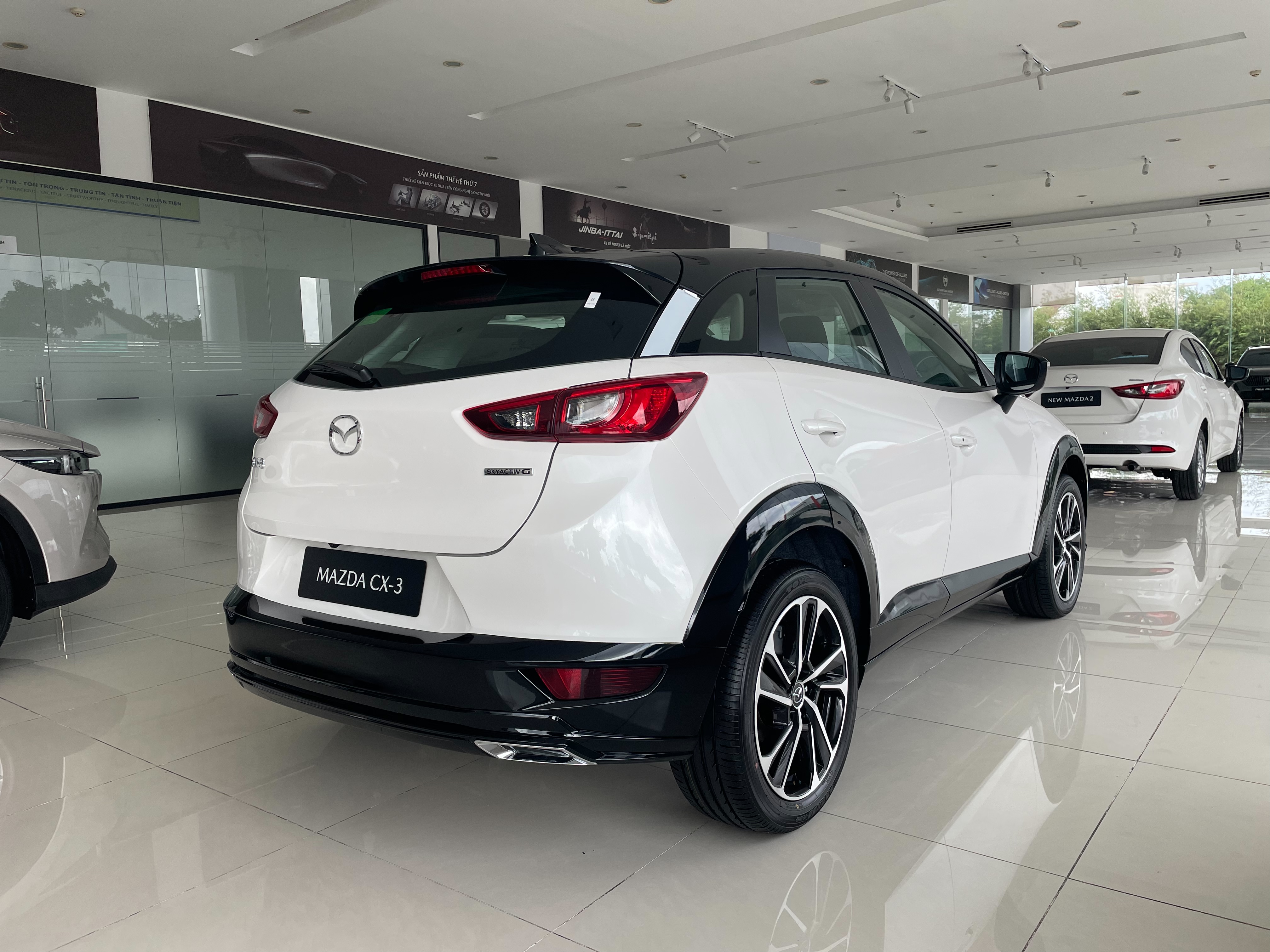 Xe sở hữu màn hình giải trí 7 inch hỗ trợ kết nối Apple CarPlay và Android Auto, ghế da trên hai bản cao, ghế nỉ ở hai bản thấp. Các trang bị tiêu chuẩn của CX-3 mới như phanh tay điện tử, giữ phanh tự động.