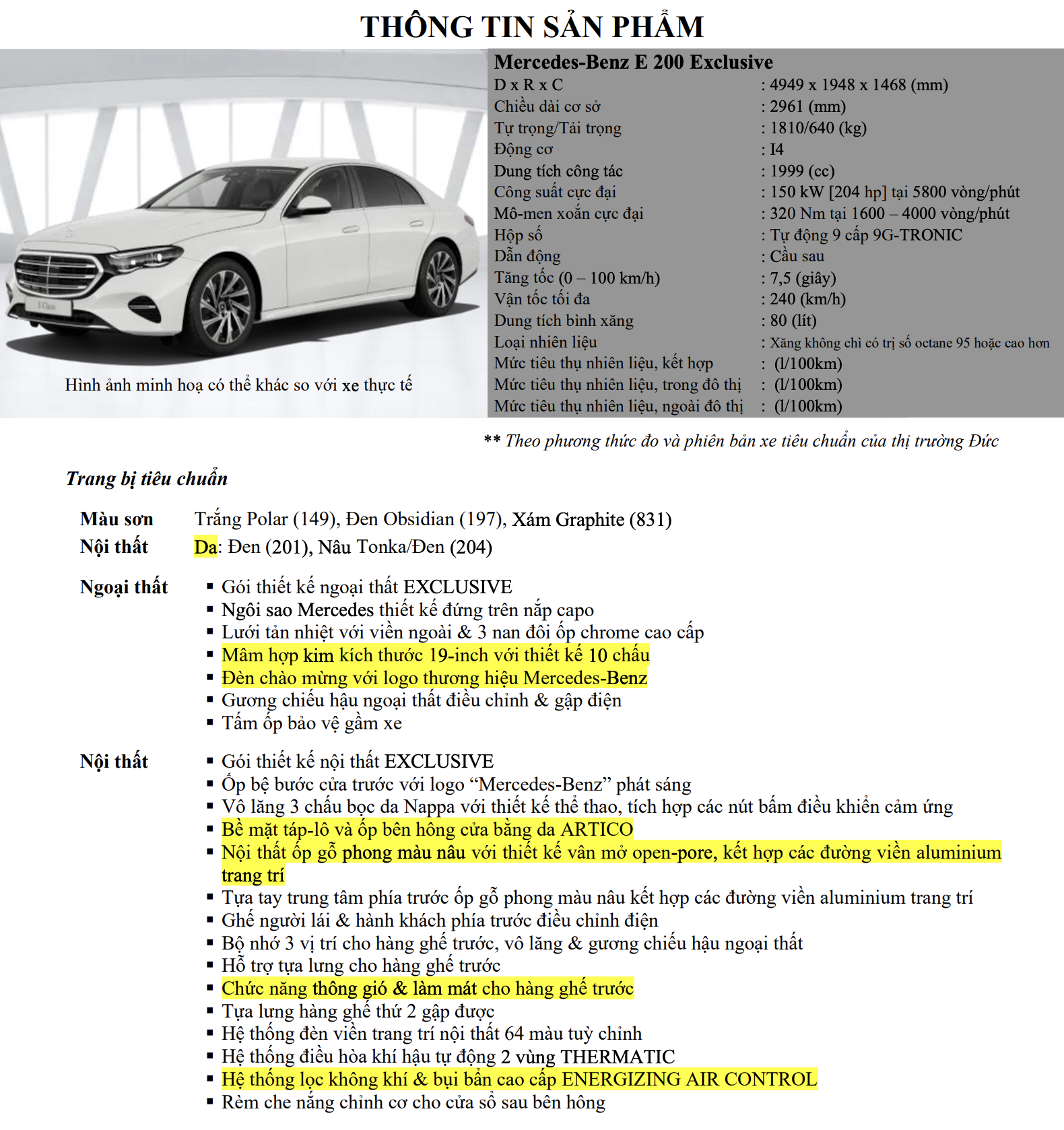 E200 Exclusive mới được phân phối với giá bán hợp lý, giúp tăng tính cạnh tranh trong phân khúc. Với sự kết hợp giữa phong cách tinh tế, công nghệ tiên tiến và khả năng vận hành vượt trội, E-Class được xem là lựa chọn hàng đầu cho doanh nhân trẻ, giới nghệ sĩ và những người yêu thích sự sang trọng đẳng cấp.