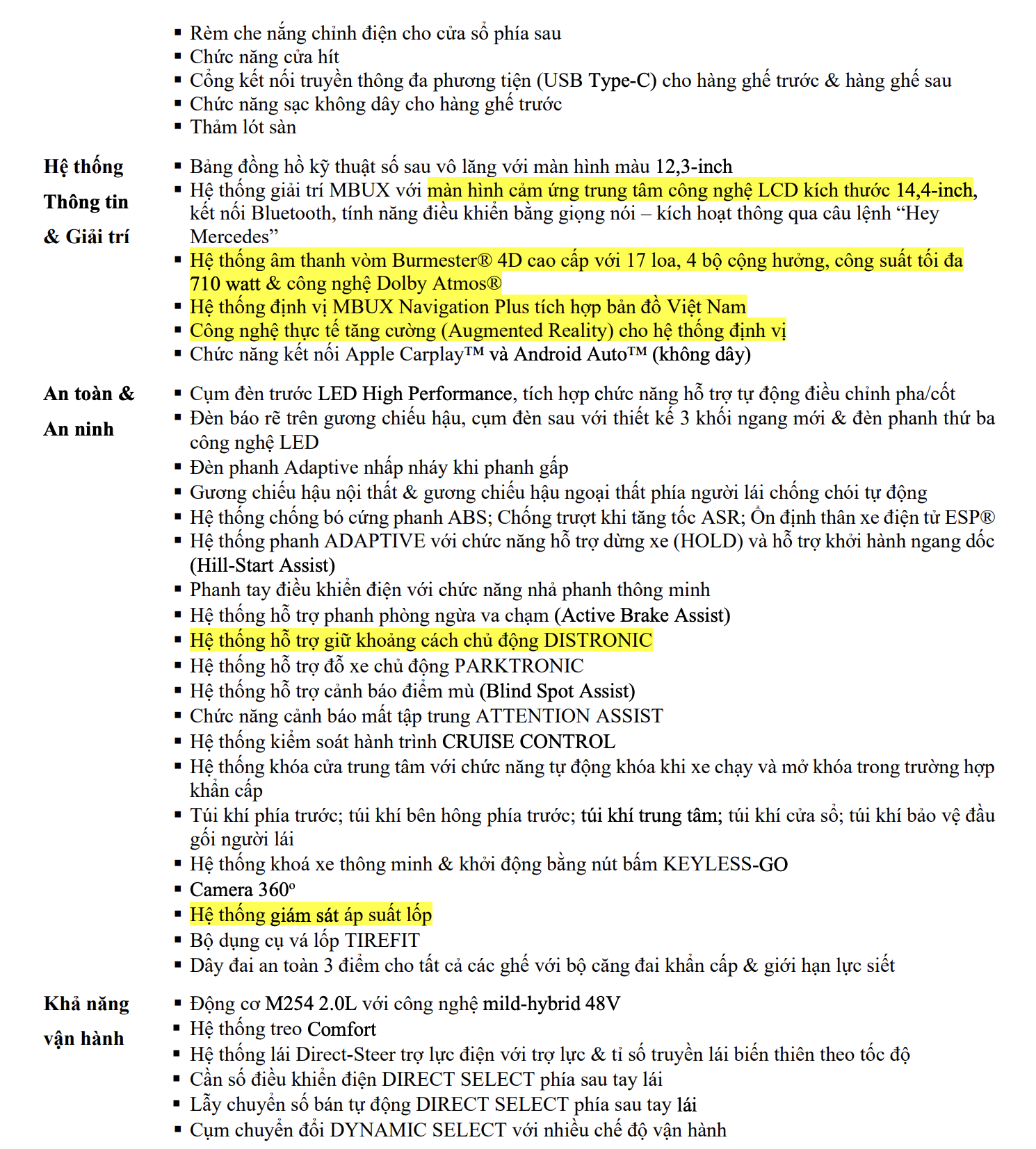 Tất cả những trang bị này giúp E200 Exclusive duy trì vị thế là mẫu sedan hạng sang an toàn hàng đầu trong phân khúc, đúng với tiêu chuẩn của thương hiệu Mercedes-Benz.