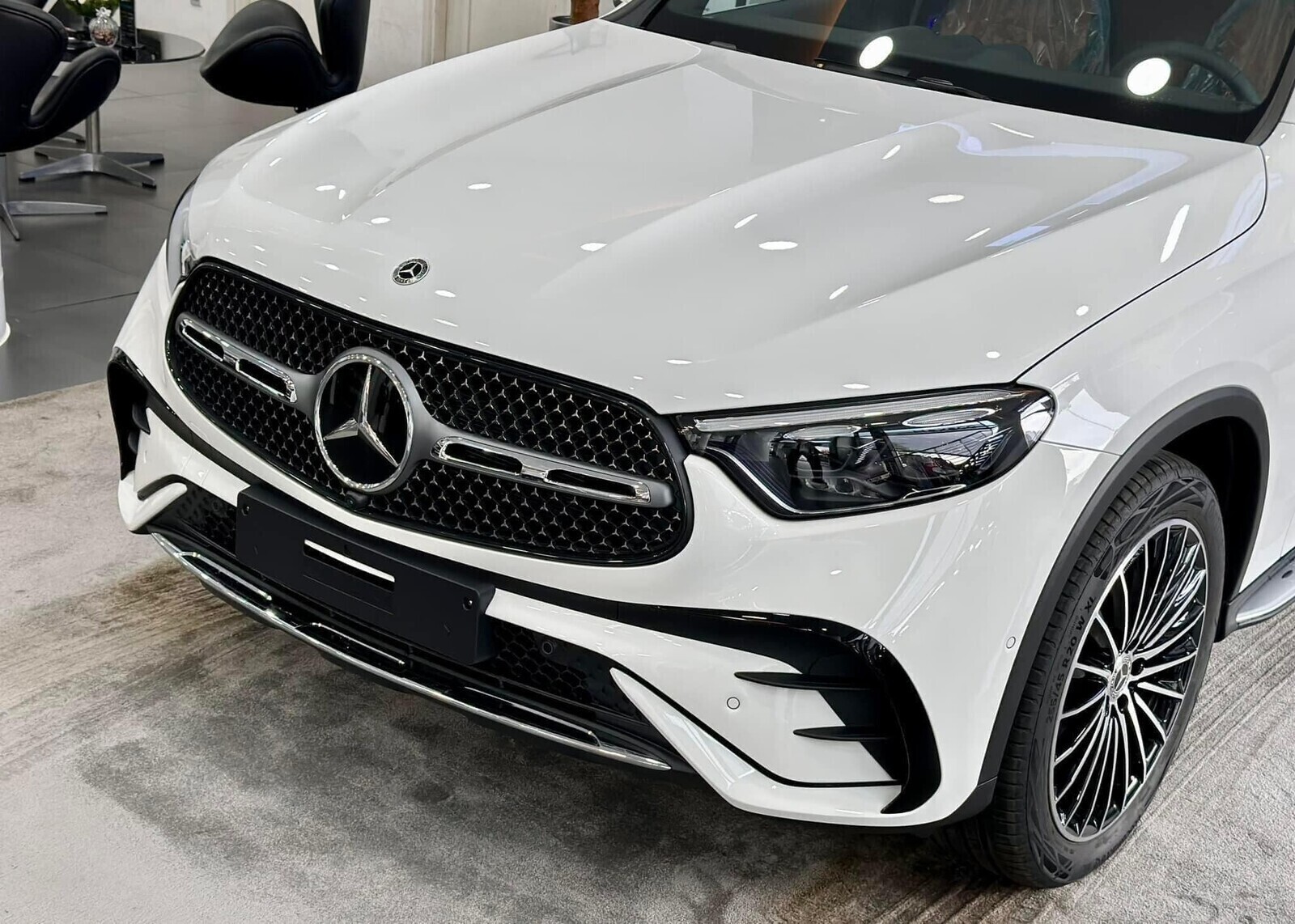 Đèn pha LED tiêu chuẩn được mở rộng, nối liền vào lưới tản nhiệt. Tùy thuộc vào phiên bản, lưới tản nhiệt trên GLC 2025 sẽ có hình dạng khác nhau. Các bản AMG GLC có cửa gió lớn hơn, các đường viền có nhiều tùy chọn màu sơn hơn, trong khi bản tiêu chuẩn có viền mạ chrome. Bề mặt thân xe được kéo dài với thiết kế mới ở các góc cạnh hai bên và nhấn mạnh tỷ lệ của vòm bánh xe, nhờ đó tạo ra sự cân bằng giữa nét thanh lịch và sự mãnh mẽ.