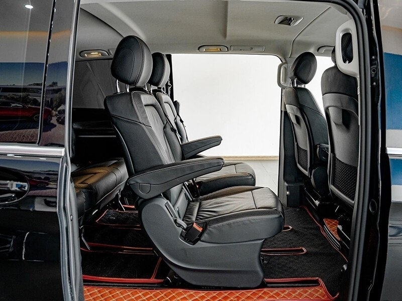 Với chiều dài cơ sở đạt 3.200 mm, Mercedes V250 Luxury 2025 ghi điểm trong mắt khách hàng nhờ không gian nội thất rộng rãi, cùng vẻ đẹp sang trọng đến từ những vật liệu cao cấp như da, gỗ và hợp kim nhôm. Hệ thống đèn viền nội thất có thể tùy chỉnh 3 màu sắc cũng như độ sáng giúp cho không gian thêm phần lung linh, ấn tượng.