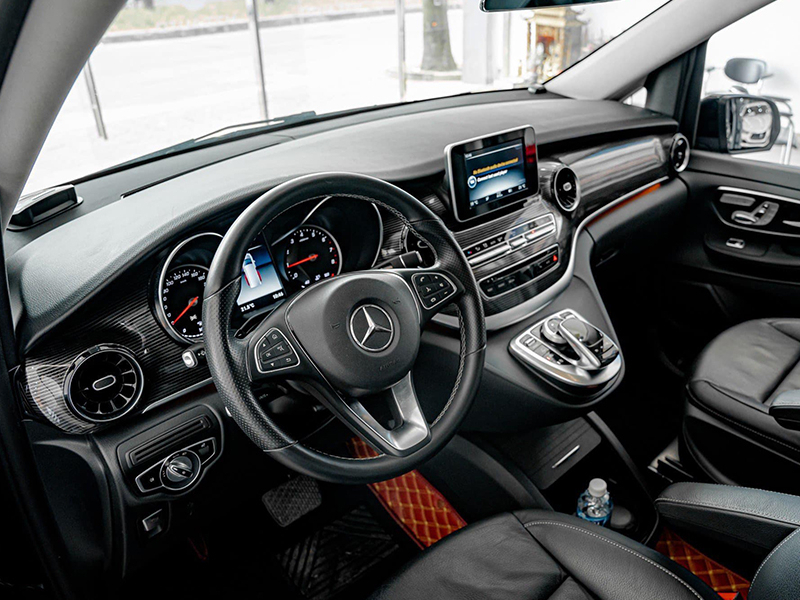 Vô lăng Mercedes-Benz V250 Luxury là loại đa chức năng 3 chấu bọc da Nappa êm ái, mang lại cảm giác cầm nắm chắc tay. Phía trên vô lăng có tích hợp các nút điều khiển hiện đại với thiết kế tinh xảo và đẹp mắt hơn trước, bao gồm: điều chỉnh âm lượng, kết nối cuộc gọi, điều khiển hành trình hoặc truy cập hệ thống giải trí.