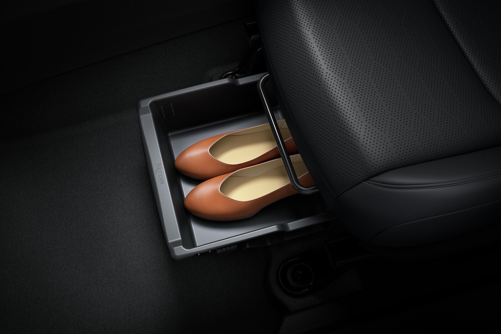 Khu vực bảng táp-lô sử dụng vật liệu mềm, tích hợp hai màn hình: một màn 12,3 inch cho hệ thống giải trí và một cụm đồng hồ kỹ thuật số 8 inch cho người lái. Cửa sổ trời toàn cảnh, đèn viền nội thất 64 màu, dàn âm thanh Yamaha 8 loa và loạt cổng sạc USB đầy đủ cho mọi hàng ghế là những điểm nhấn đáng chú ý.