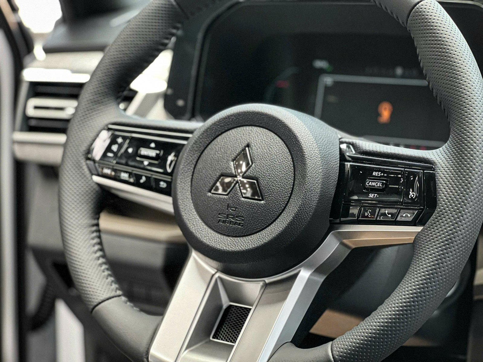 Vô lăng 3 chấu của Mitsubishi Xforce 2025 bọc da, vạt đáy D-cut